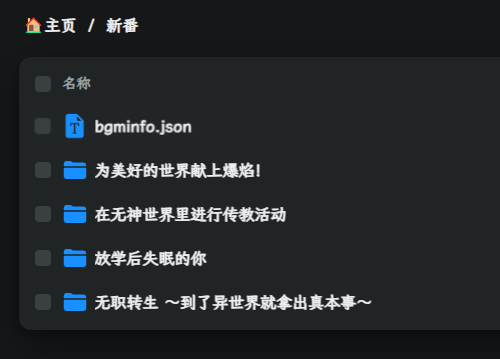 bgm_info = {} data = json.loads(json.dumps(bgm_info)) fordirin os.listdir(path): if os.path.isfile(path+dir): continue maxep = find_maxep(path+dir) info = {'title': dir, 'year': '', 'maxep': maxep, 'season': ''} if os.path.exists(path+'bgminfo.json'): withopen(path+'bgminfo.json','r') as g: bginfo = json.load(g) ifnotdirin bginfo: season = find_season(path+dir) info['season'] = season data[dir] = info continue